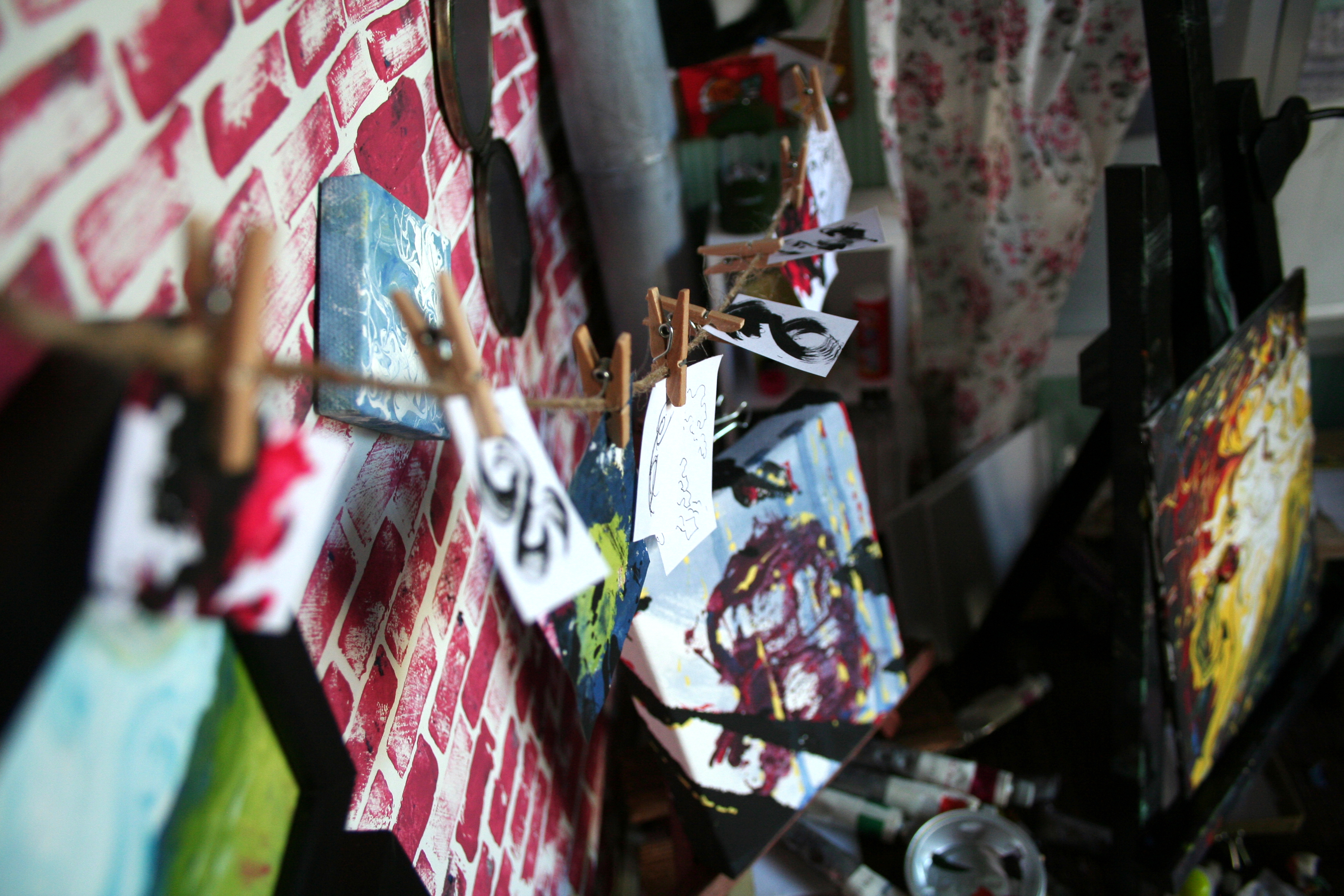 IMG_1465I made a miniature set of an artist’s studio! It was so much fun to make. There was a lot of scouring for tiny things, tons of hot glue, and making of small paintings and drawings. I hope you enjoy!