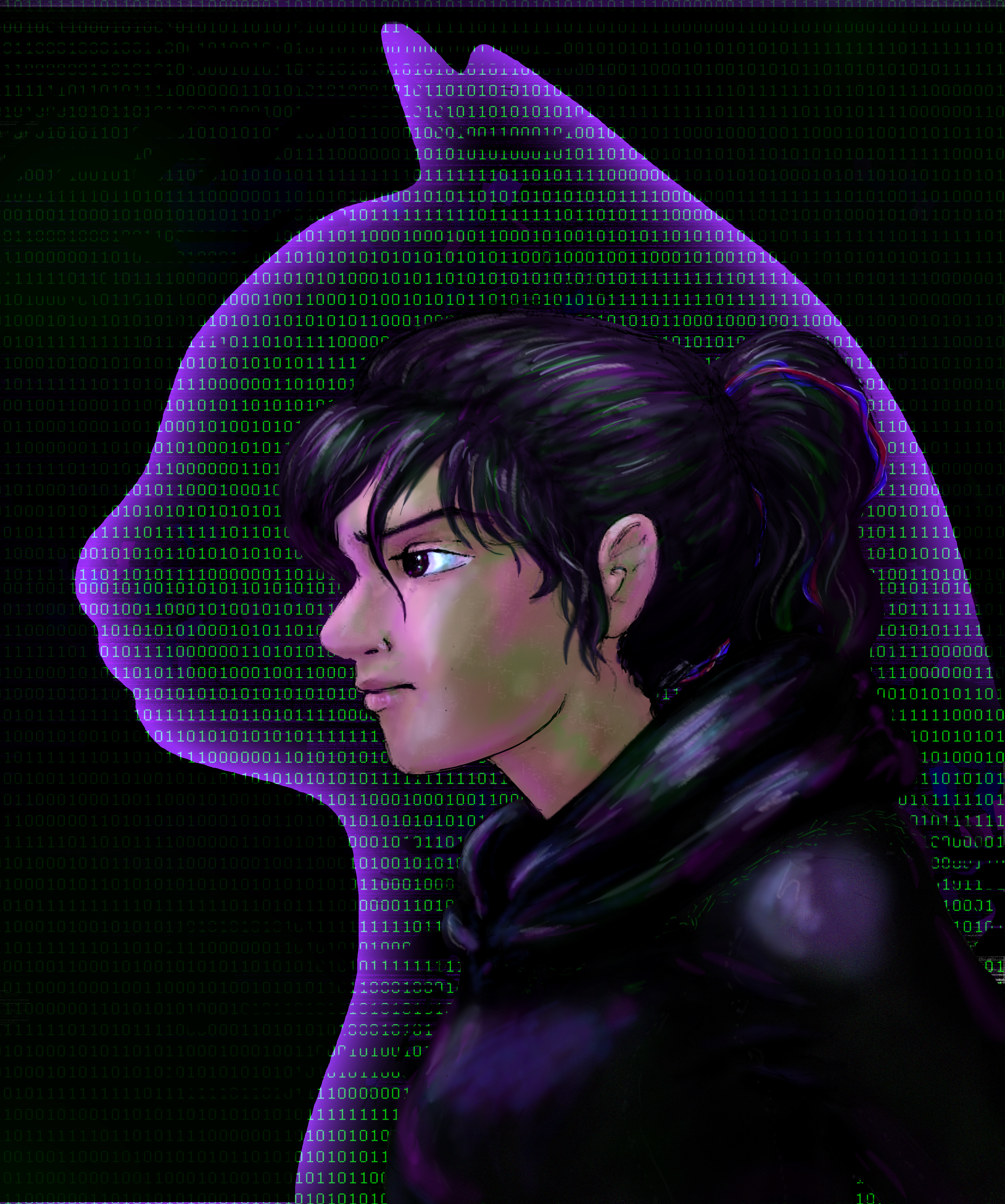 Glitch I’ve had the privilege of being a test reader for a friend’s story. In the wee hours of the morning, while feeding my infant son, an image inspired by her character popped into my head, and I had to make it. This is the result. Enjoy! Share this: Click to share on Facebook (Opens in new window) Facebook Click to share on X (Opens in new window) X Like Loading... Related February 5, 2017 by melissabethrose Categories: Digital Painting, Drawings, IllustrationsTags: catavatar, character design, cyberpunk, glitch, hacker, hackergirl, purpleandgreen Leave a comment